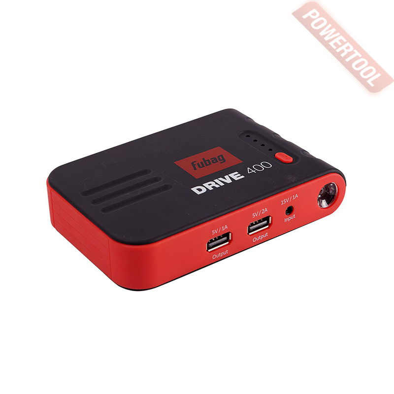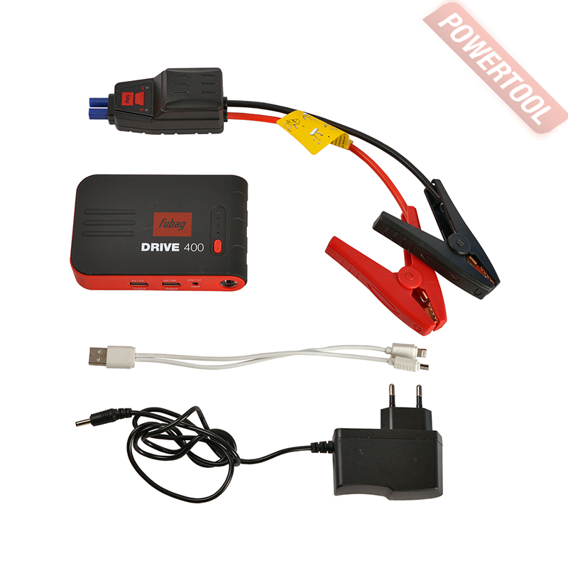 Автономное пусковое устройство FUBAG Drive 400 может запустить двигатель мотоцикла и автомобиля при севшем аккумуляторе с напряжением 12 В. Данная модель позволит зарядить телефон, смартфон, планшет или ноутбук в походе, в командировке, на рыбалке или вдали от электрической сети. При компактных размерах и не большом весе устройство обеспечивает силу пускового тока в 200 А, а пикового – 400 А, что позволяет запускать двигатели объемом до 3 литров даже зимой. Емкость встроенного аккумулятора в 10000 мА/ч позволяет осуществить более 30 запусков до полного разряда. В пусковом устройстве Drive 400 есть полезный режим BOOST (ускоренная зарядка аккумулятора большим током для уверенного пуска двигателя).