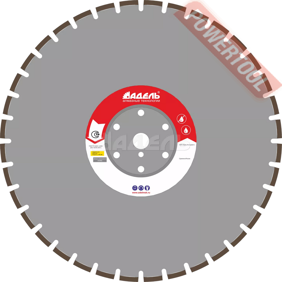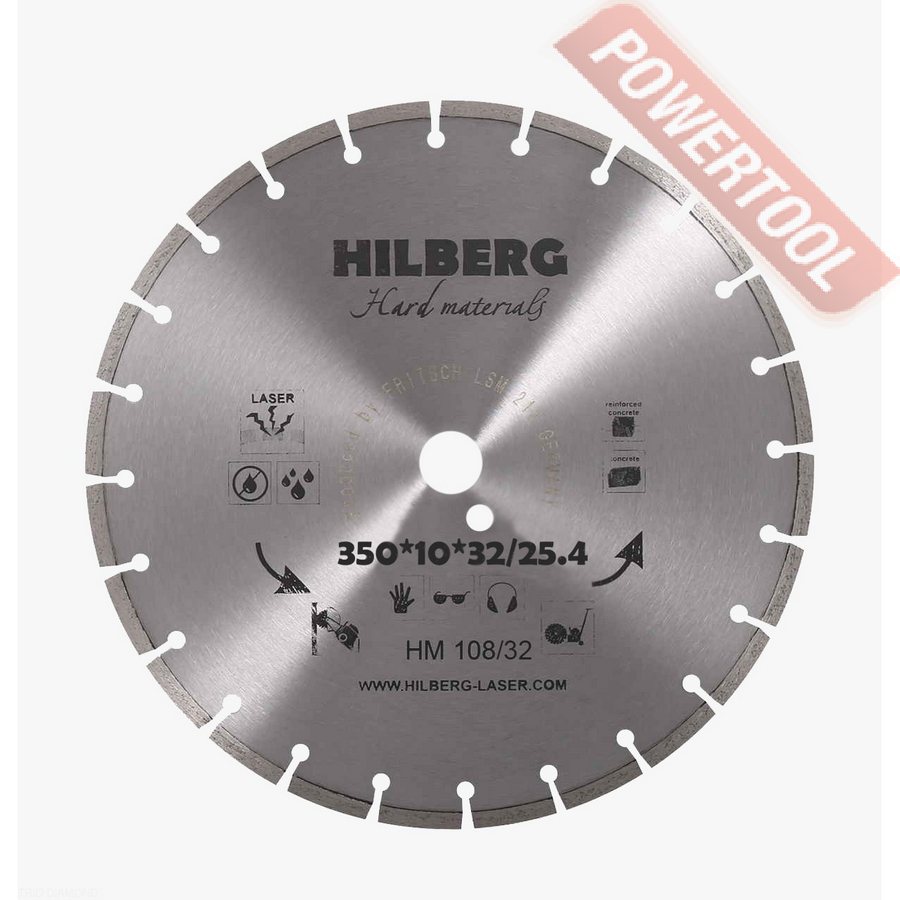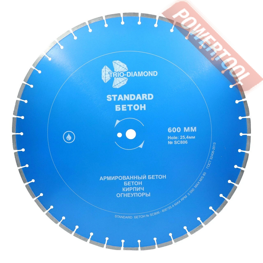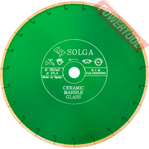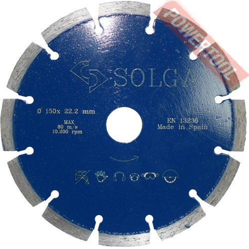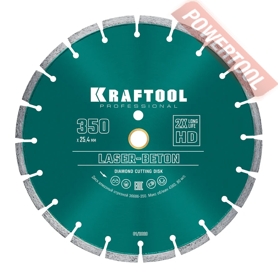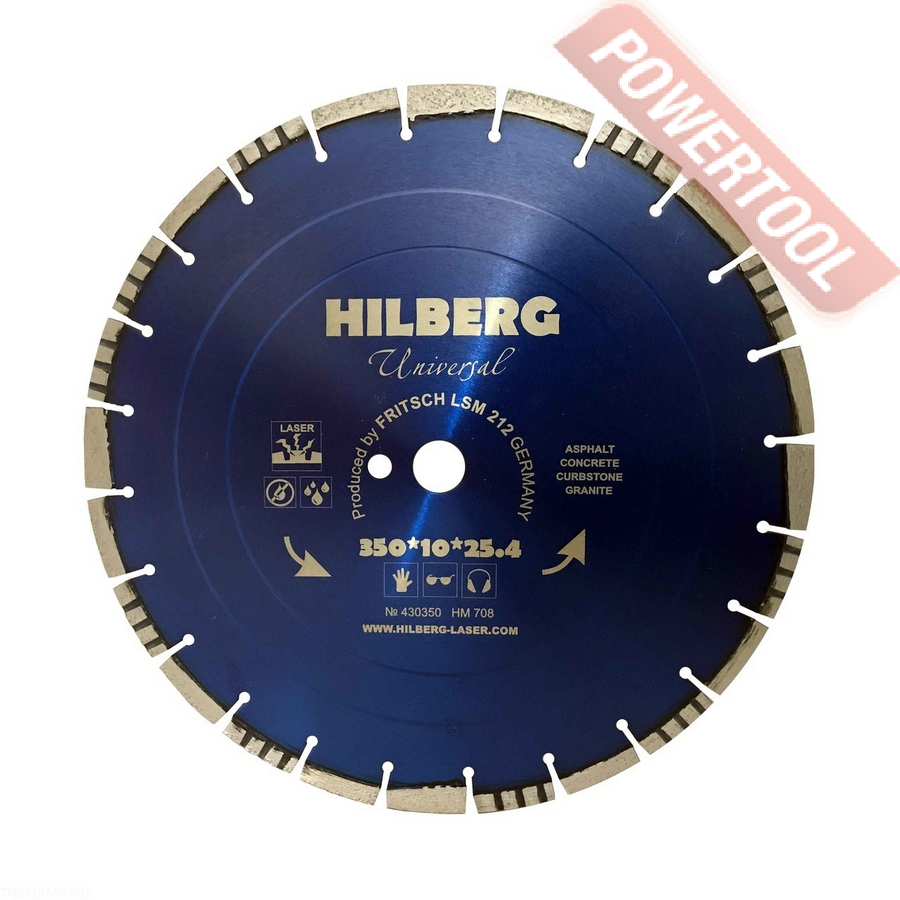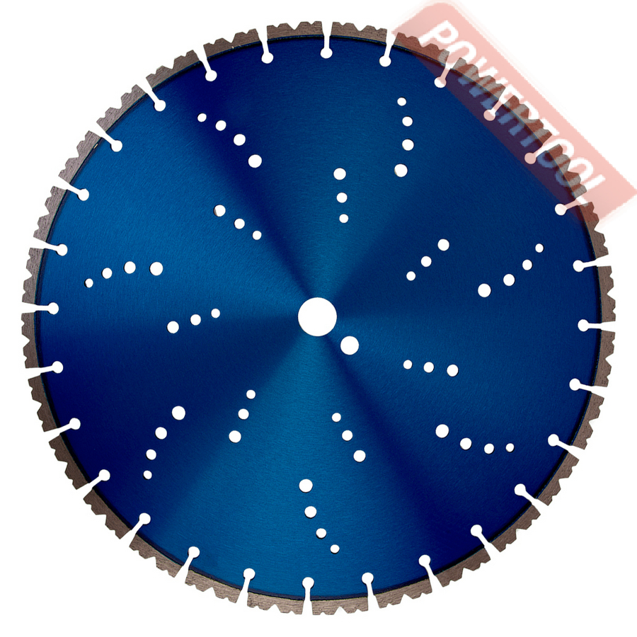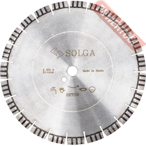 Диск алмазный сегментный универсальный, диаметр 350 мм, посадочное отверстие 25,4 мм, высота сегмента 12 мм, лазерная сварка, мокрый рез, оптимально режет кирпич, бетон, абразивные материалы, мягкий грани. Ограниченно режет мрамор, твердый гранит, керамическую плитку. Диск с максимальной скоростью резки и высокой стойкостью. Произведен по технологии DPS позиционирования алмазов в режущем слое. Сертифицирован oSa.