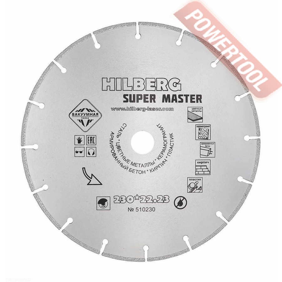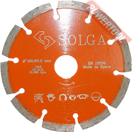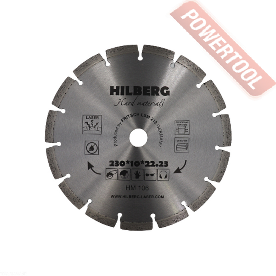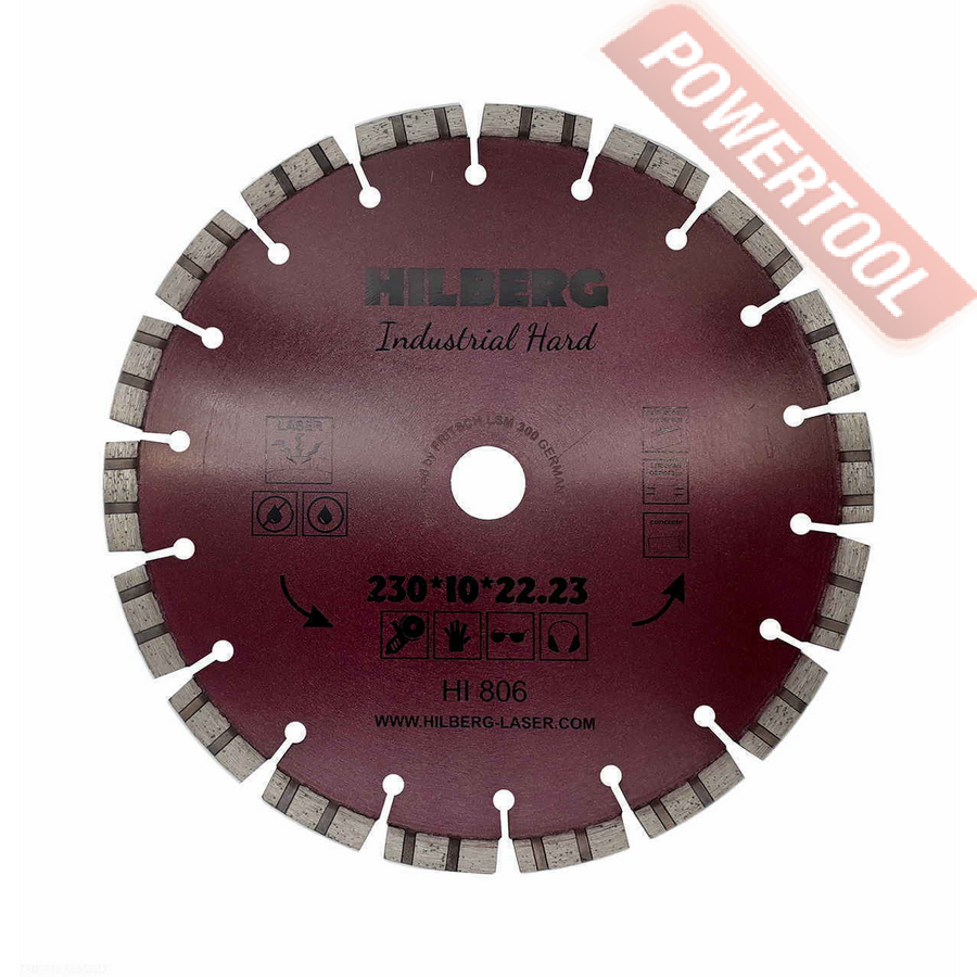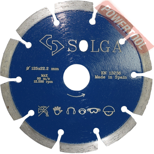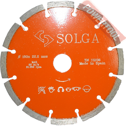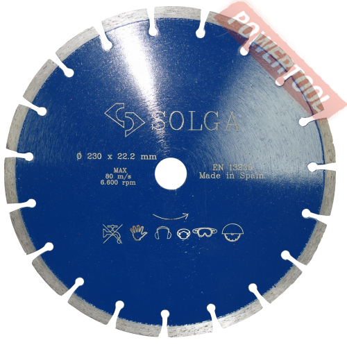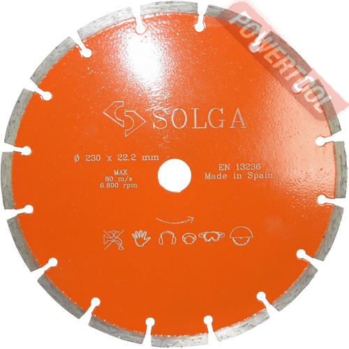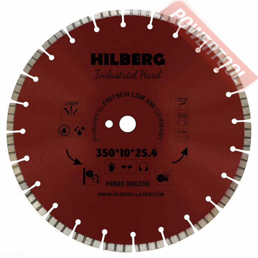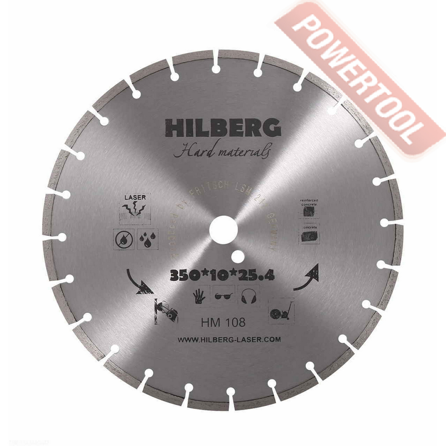Диск алмазный сегментный универсальный, диаметр 350 мм, посадочное отверстие 25,4 мм, высота сегмента 12 мм, лазерная сварка, мокрый рез, оптимально режет кирпич, бетон, абразивные материалы, мягкий грани. Ограниченно режет мрамор, твердый гранит, керамическую плитку. Диск с максимальной скоростью резки и высокой стойкостью. Произведен по технологии DPS позиционирования алмазов в режущем слое. Сертифицирован oSa.