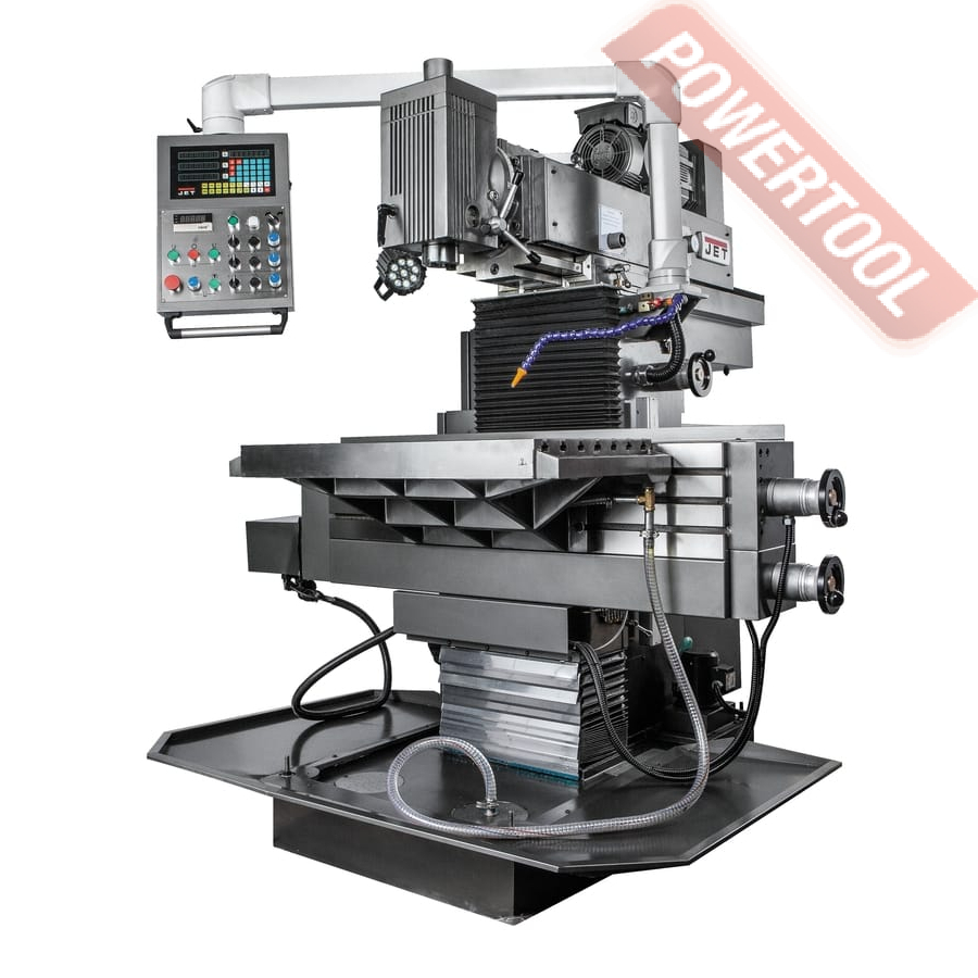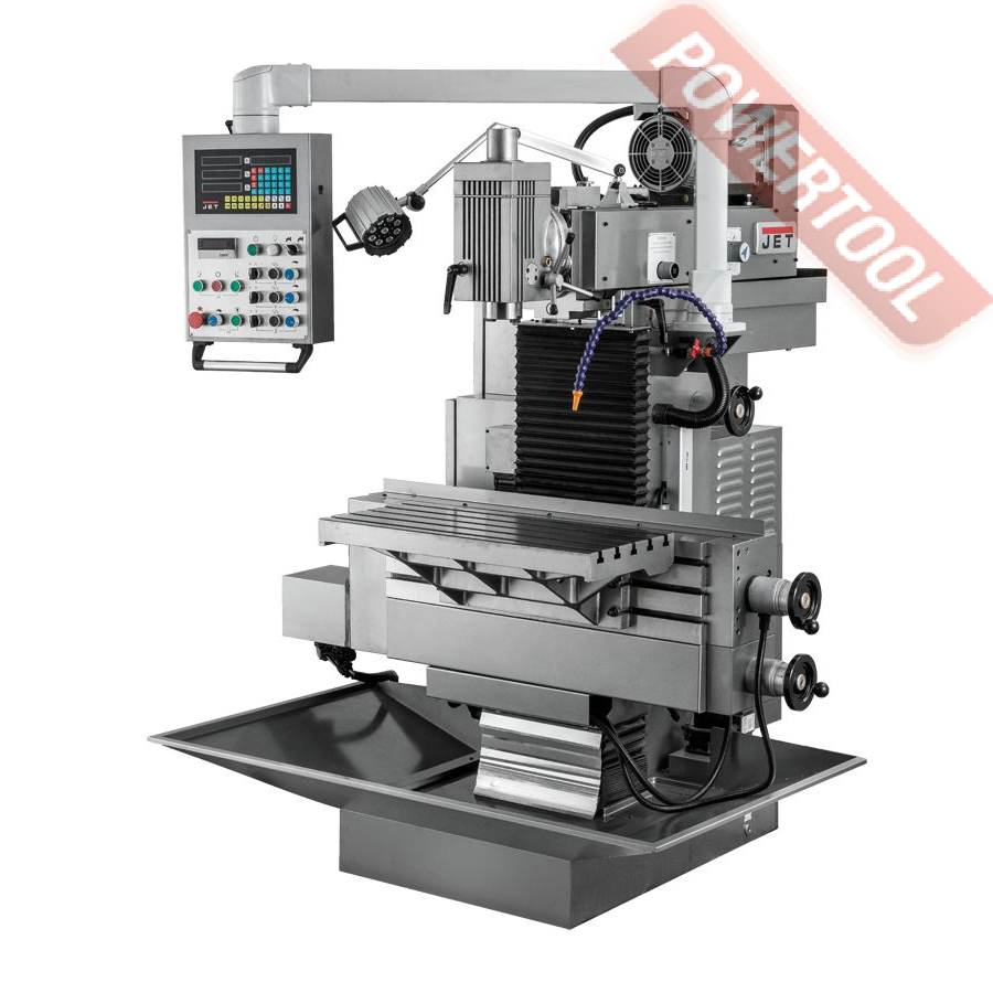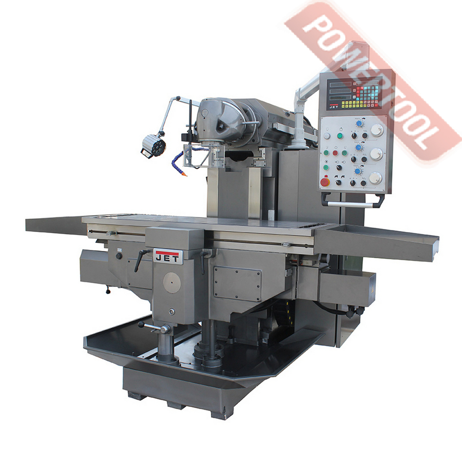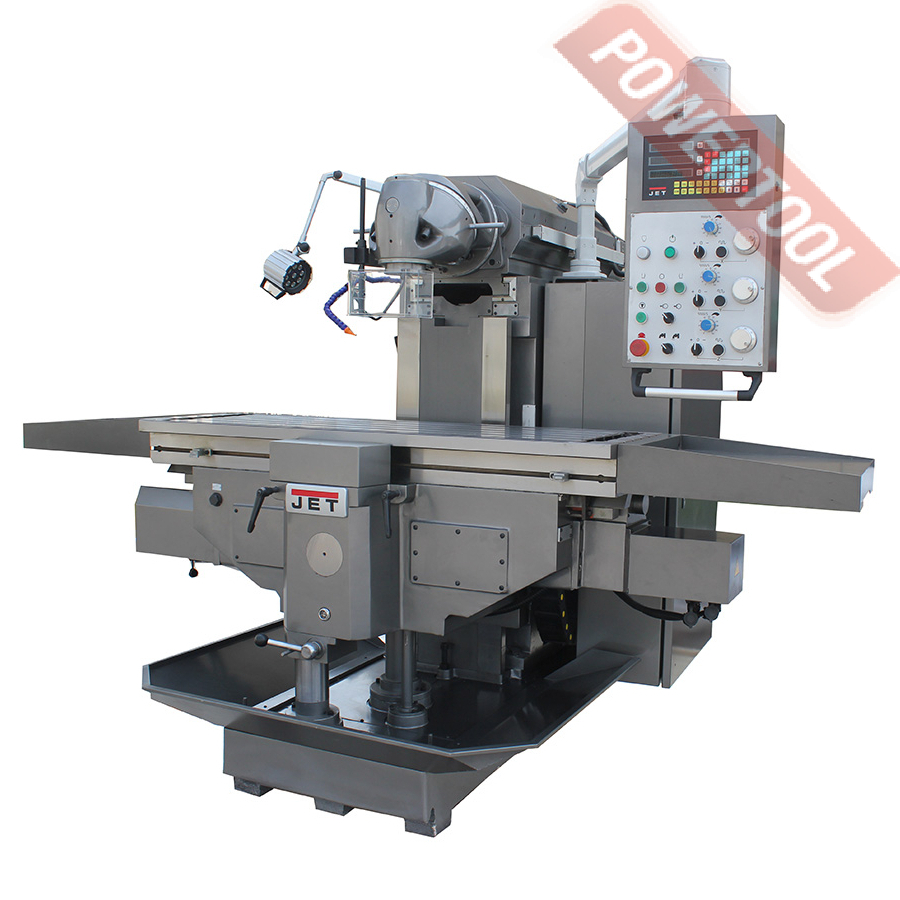 Широкоуниверсальный фрезерный станок по металлу JET JMD-939 GH востребован в многопрофильных мастерских и ремонтных подразделениях, автотюнинговых ателье, конструкторских бюро и т.д. Максимальный диаметр концевой фрезы у данной модели 100 мм, концевой - 25 мм, максимальный диаметр сверления - 30 мм. Фрезерная головка имеет механизм наклона на +/-90 градусов. Предусмотрен поворот стола +/-30 градусов. Станок оборудован системой автоподачи стола по оси Х с регулируемой скоростью от 24 до 720 мм/сек, а также и его ускоренным перемещением со скоростью 1083 мм/мин. Поставляется в расширенной комплектации, включая систему подвода СОЖ, лампу освещения рабочей зоны, зажимную тягу, цанговый патрон с набором цанг, оправку шпинделя, фрезерные тиски, 16 мм сверлильный патрон и многое другое.