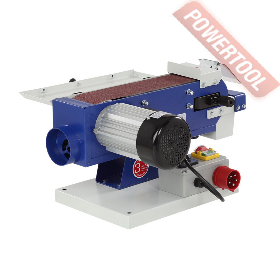 Ленточно-шлифовальный станок по металлу, мощность 1400 Вт, напряжение 380 В, шлифлента 100х1220 мм, 2 скорости движения ленты 9,5/19 м/с, высота рабочей поверхности 300 мм, возможность подключения стружкоотсоса, диаметр отверстия для аспирации 100 мм, размер ДхШхВ 670х380х380 мм, вес 28,8 кг, шлифлента зернистость 80, регулируемый упор, защитный экран, контейнер для сбора пыли, шестигранник 2 шт.