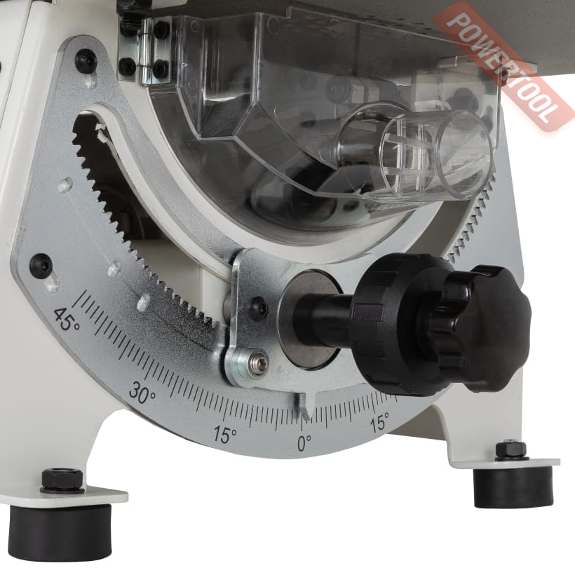 - Наклон пильной рамы с помощью зубчатого механизма для пиления под углами +30-(90)0-45.