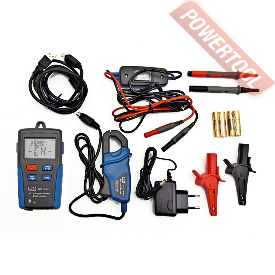 Логгер тока и напряжения CEM DT-175CV1 - наиболее удобный и недорогой регистратор «True RMS» тока и напряжения. Показания сохраняются в памяти прибора (100000 записей) и их просто прочитать на компьютере через USB интерфейс. ЖК - дисплей может показывать текущие показания, а также MAX, MIN и сигнал тревоги.