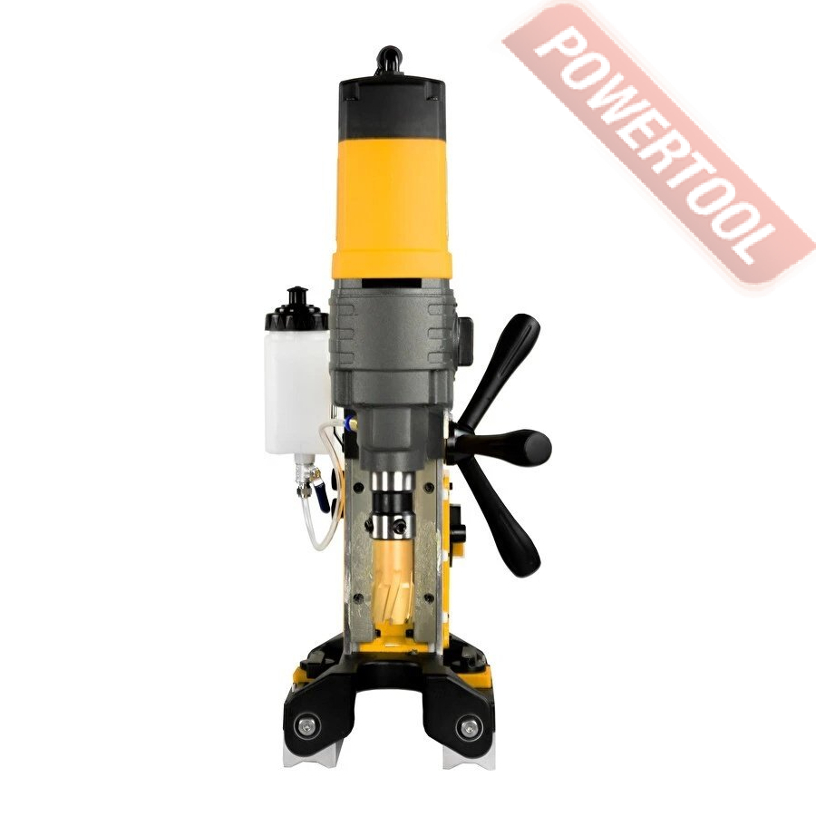 Магнитный сверлильный станок, 1700 Вт, 220 В, max диаметр корончатого сверла 50 мм, max диаметр спирального сверла 16 мм, крепление корончатого сверла на Weldon 19, ход шпинделя 230 мм, частота вращения шпинделя 0-780 об/мин, регулировка числа оборотов, прижимная сила 16500 Н, система подачи СОЖ, возможность фиксации на трубах, размер ДхШхВ 350х150х290 мм, вес 11,6 кг, в комплекте система СОЖ, рукоятка регулировки высоты 3 шт, страховочный ремень, набор шестигранников, предохранитель 2 шт, кейс.