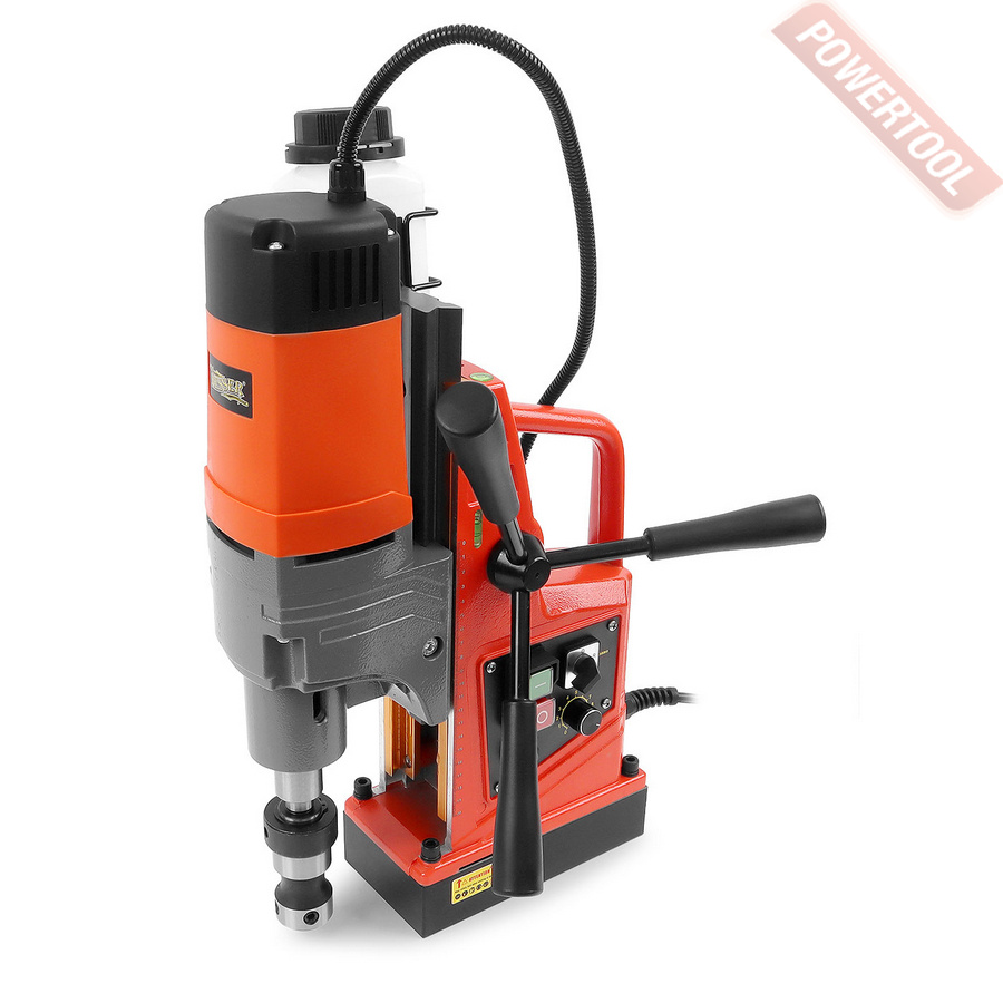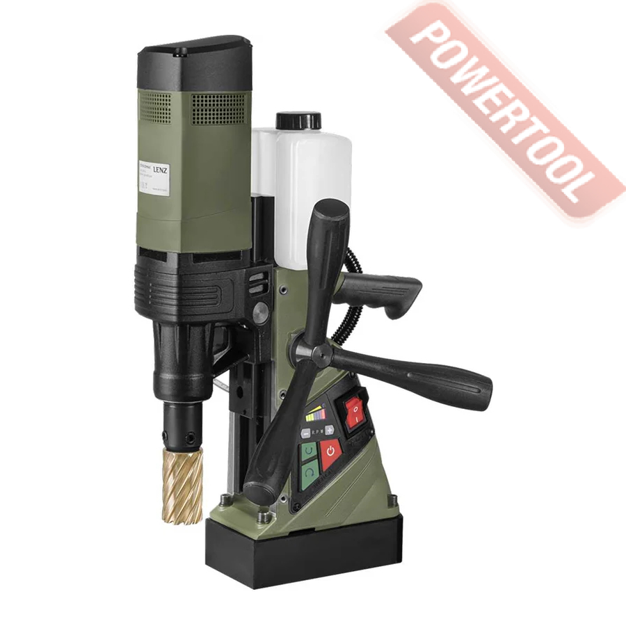 Магнитный сверлильный станок, 1700 Вт, 220 В, max диаметр корончатого сверла 75 мм, max диаметр спирального сверла 31,75 мм, конус шпинделя КМ 3, крепление корончатого сверла на Weldon 19 и Weldon 32, ход шпинделя 255 мм, частота вращения шпинделя 110/175/245/385 об/мин, 4 скорости, размер магнитного основания ДхШ 220х110 мм, габариты ДхШхВ 366х239х725 мм, вес 25 кг, регулировка оборотов, система подачи СОЖ, в комплекте промышленный патрон КМ3/Weldon 19, промышленный патрон КМ3/Weldon 32, бачок для СОЖ, клин, 4 штифта-выталкивателя ZAK 075, ZAK 090, ZAK 100, ZAK 120, предохранительная цепь, г-образный ключ шестигранник, кейс.