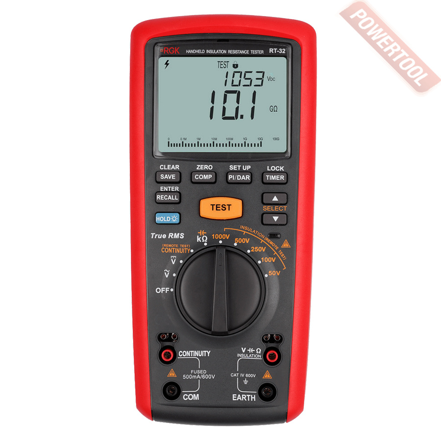 Измеритель сопротивления изоляции RGK RT-32 с поверкой помогает определить индекс поляризации и рассчитать коэффициент абсорбции. Первый из этих параметров дает общее представление об износе изоляции, в то время как второй отражает уровень накопления в ней влаги. Такие данные необходимы для своевременного проведения ремонта или замены проводников.