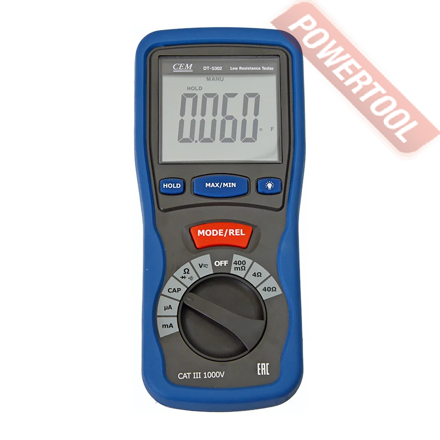 Миллиомметр с функцией мультиметра CEM DT-5302 — прибор, объединяющий в себе функционал мультиметра и миллиомметра, вольтметра и амперметра. Мультифункциональный гаджет прозванивает цепь для поиска зон обрыва, проводит тест диодов.