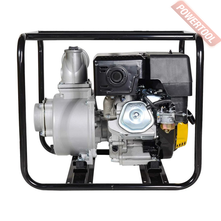 Мотопомпа бензиновая для чистой воды, max производительность 1300 л/мин, max уровень подъема 30 м, max глубина всасывания 8 м, диаметр отверстий вход / выход G4 или 100 мм, max допустимый размер частиц 5 мм, 4-х тактный бензиновый двигатель объемом 389 куб.см мощностью 13 л.с., ручной старт, топливный бак 6 л, емкость картера 0,6 л, размер (ДхШхВ) 590x460x450 мм, вес 47 кг.