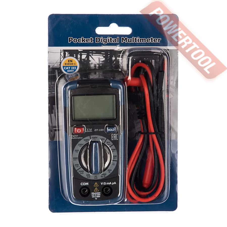 Мультиметр цифровой ручной CEM DT-105 — бюджетное карманное устройство, выполняющее широкий круг задач. В комплекс стандартных возможностей вошло измерение: постоянного и переменного напряжения (в диапазонах до 600 В), силы тока, сопротивления и температуры (до 760℃ / 1400℉). В качестве дополнительной опции измеритель способен прозвонить электроцепь, что расширяет сферу применения.
