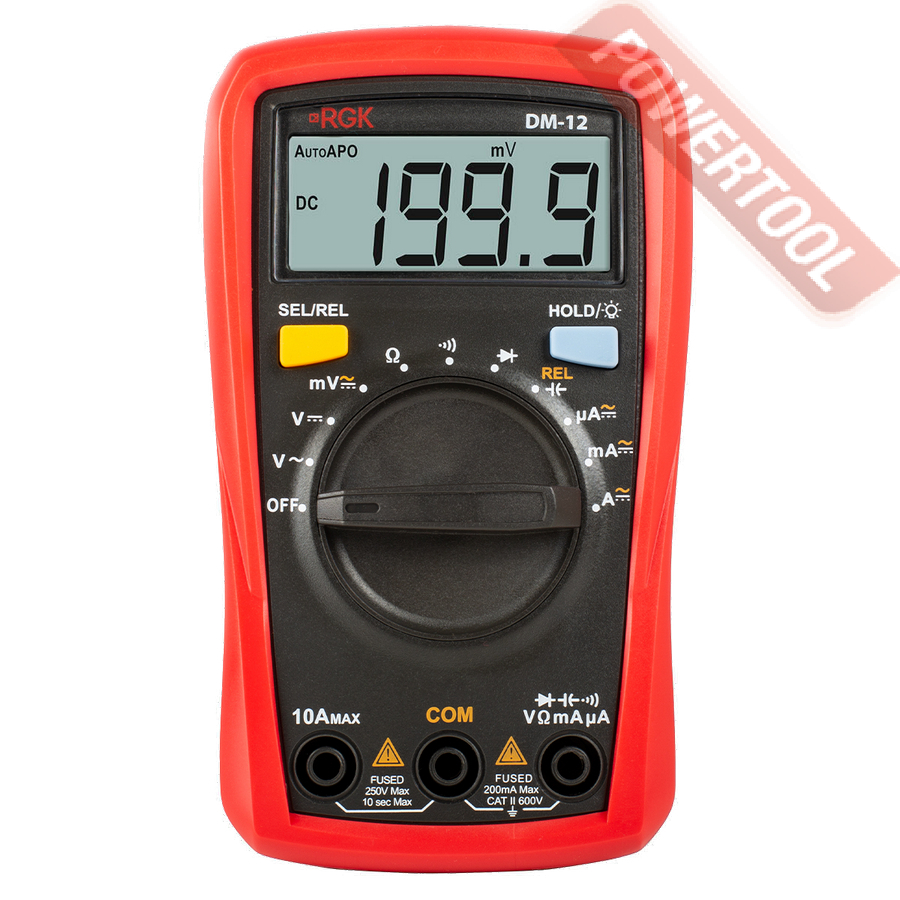 Мультиметр цифровой с поверкой RGK DM-12 измеряет такие параметры электрических сетей и оборудования, как сила тока, сопротивление и напряжение. Этот надежный прибор используется для быстрой прозвонки цепей, диагностики различных неисправностей, определения емкости конденсаторов, проверки работоспособности диодов. Одно из преимуществ модели - режим относительных замеров REL. Устройство может решить множество бытовых и профессиональных задач в сферах строительства, ремонта, обслуживания электронной техники и др.