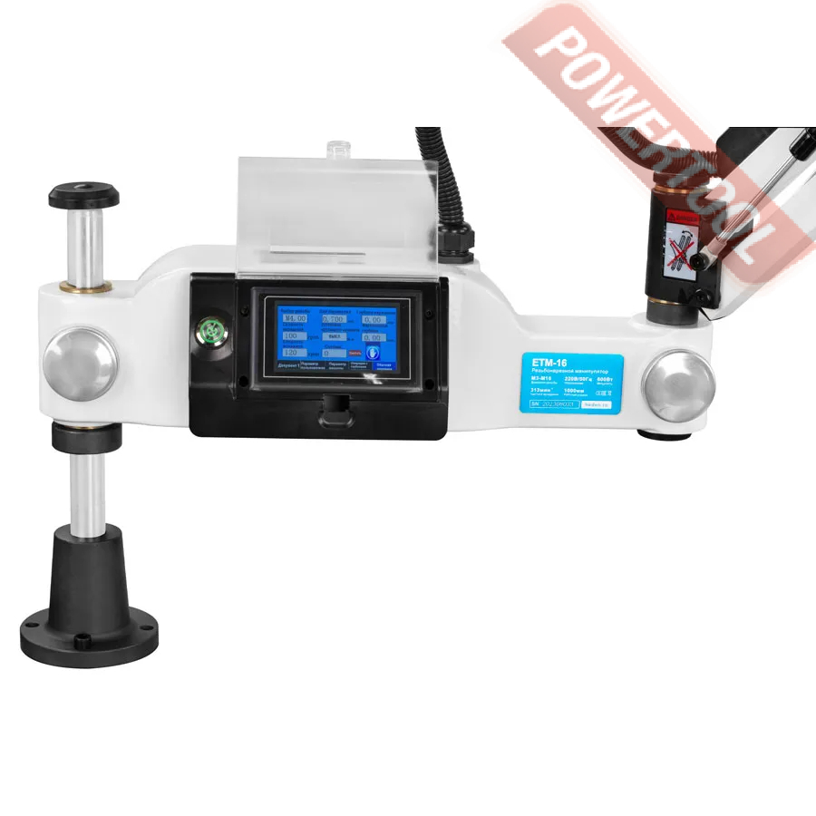 Резьбонарезной манипулятор HEDEN ETM-16 с электрическим приводом для нарезания резьбы до М16 с помощью метчиков в различных заготовках из металла, пластика и других материалов. Комплектуется поворотным модулем, который может изменять расположение электрического привода: вертикальное, горизонтальное и на 360 градусов в каждом положении.
