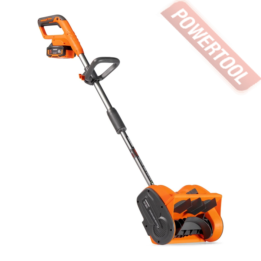 Снегоуборщик аккумуляторный, ширина ковша 30 см, высота ковша 11 см, бесщеточный двигатель, 2200 об/мин, аккумулятор Li-ion 21 В, регулировка направления выброса снега, дальность выброса снега до 4 м, пласткиковый шнек, складная конструкция, регулируемая дополнительная рукоятка, ременный привод, габариты упаковки 760х380х285 мм, вес 4,53 кг, аккумулятор 4 Ач и ЗУ.