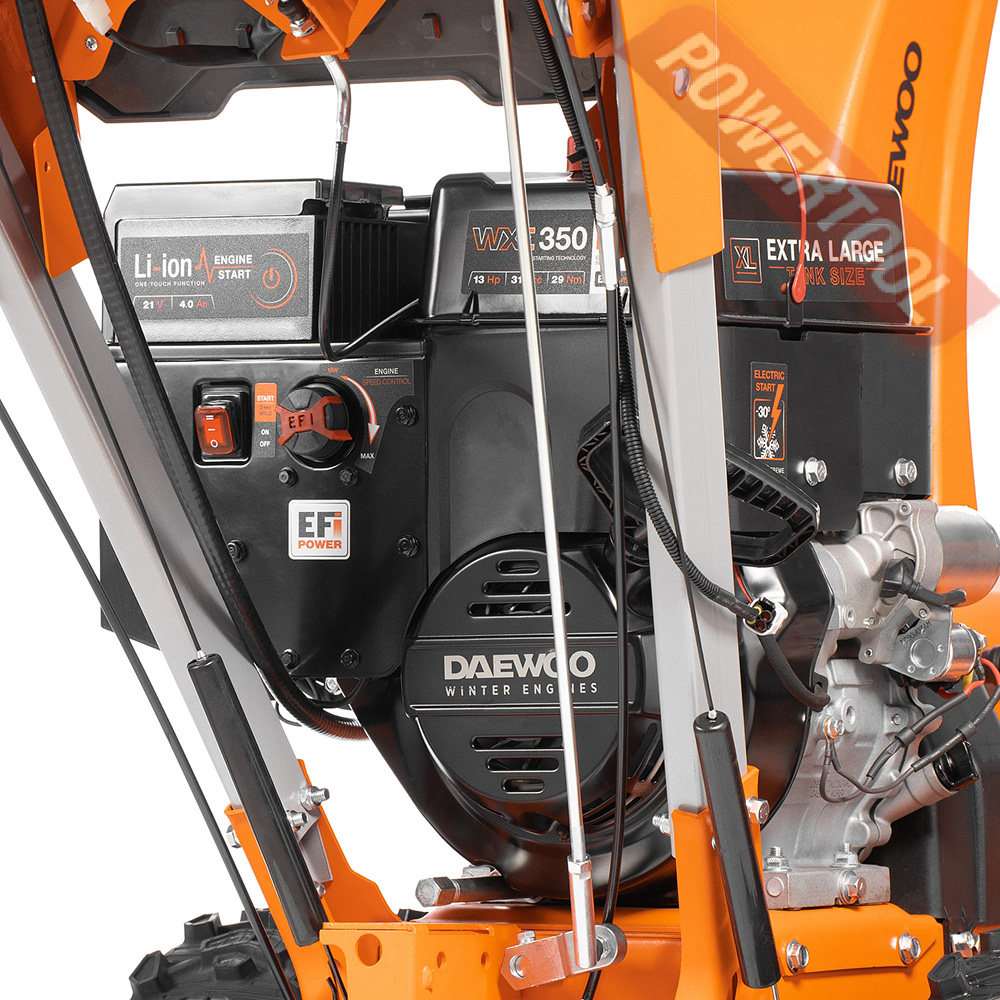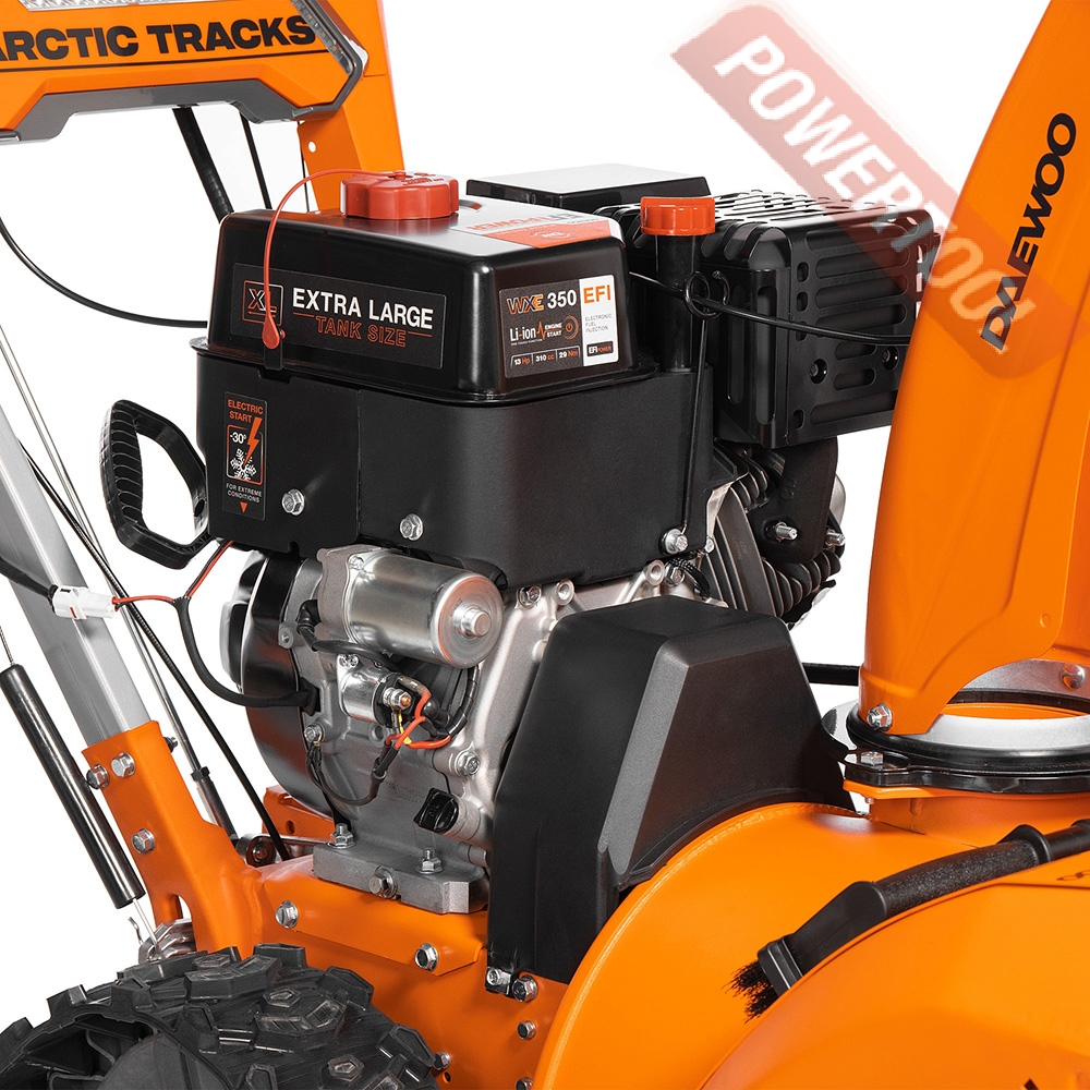 - WXE 350 EFI инжекторный двигатель DAEWOO. Инновационный двигатель WXE 350 EFI с системой непосредственного впрыска топлива разработан специально для снегоуборщиков. Обладает увеличенной до 25 процентов мощностью и сниженным до 20 процентов расходом топлива по сравнению с карбюраторными моделями.