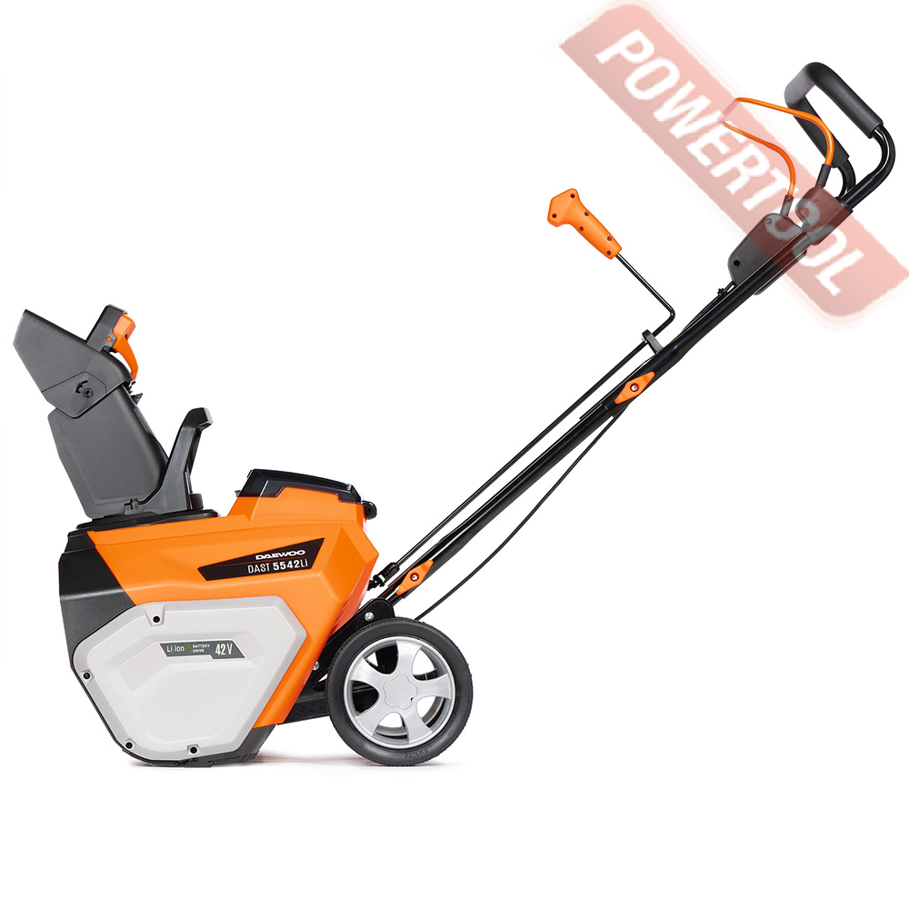 Снегоуборщик колесный аккумуляторный DAEWOO Dast 5542Li специально разработан для использования при низких температурах в зимнее время и предназначена для уборки и очистки ровных твердых поверхностей от снежных масс, снежных завалов, расчистки загородных участков и дорог от выпавшего и наметенного снега.