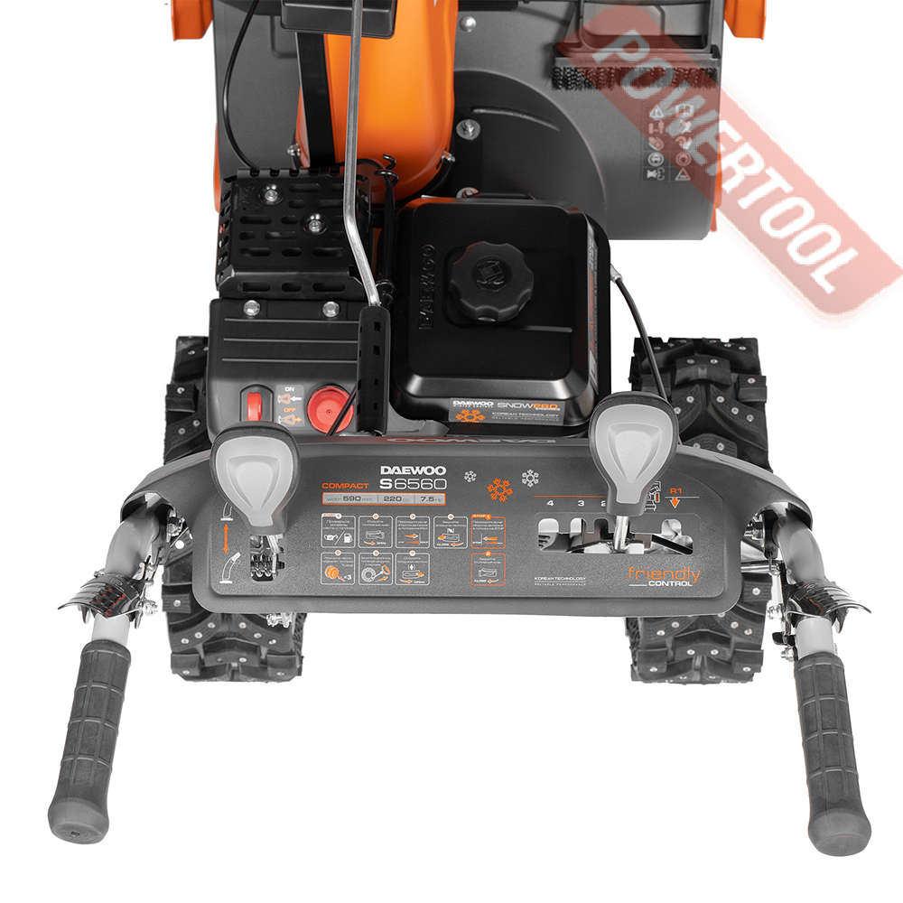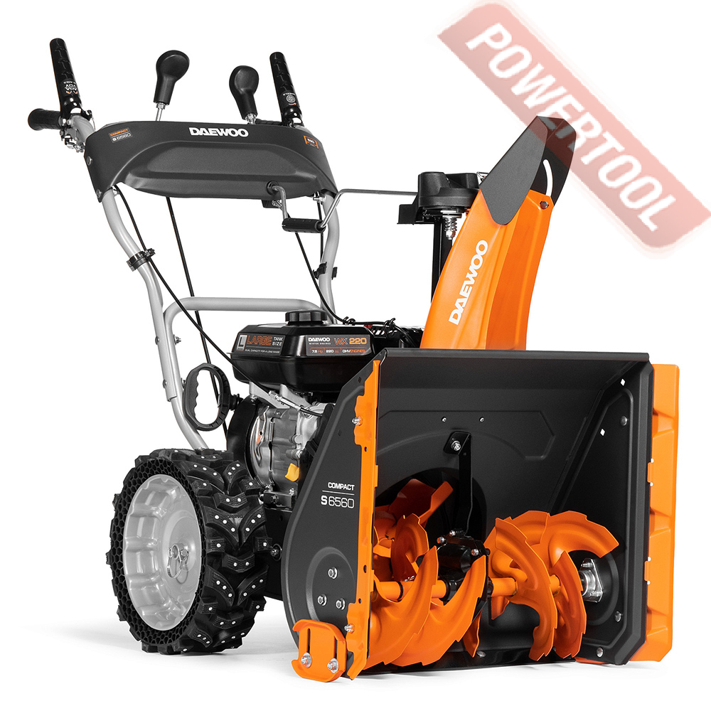 Снегоуборщик колесный самоходный DAEWOO S 6560 предназначен для расчистки как свежевыпавшего, так и уже слежавшегося снега. Машина оборудована мощным 4-тактным двигателем, ширина обработки за один проход позволяет эффективно и качественно расчищать от выпавшего снега небольшие дорожки или территорию возле загородного дома. Снегоотбрасыватель имеет двухступенчатую систему выброса снега: снег, попавший в ковш измельчается и подаётся зубчатым шнеком на крыльчатку с лопастями, которые вращаясь выбрасывают измельченный снег через патрубок в заданном оператором направлении. Наличие двух ступеней, зубчатого металлического шнека и высокоскоростной крыльчатки,позволяет разрыхлять даже слежавшийся снег.