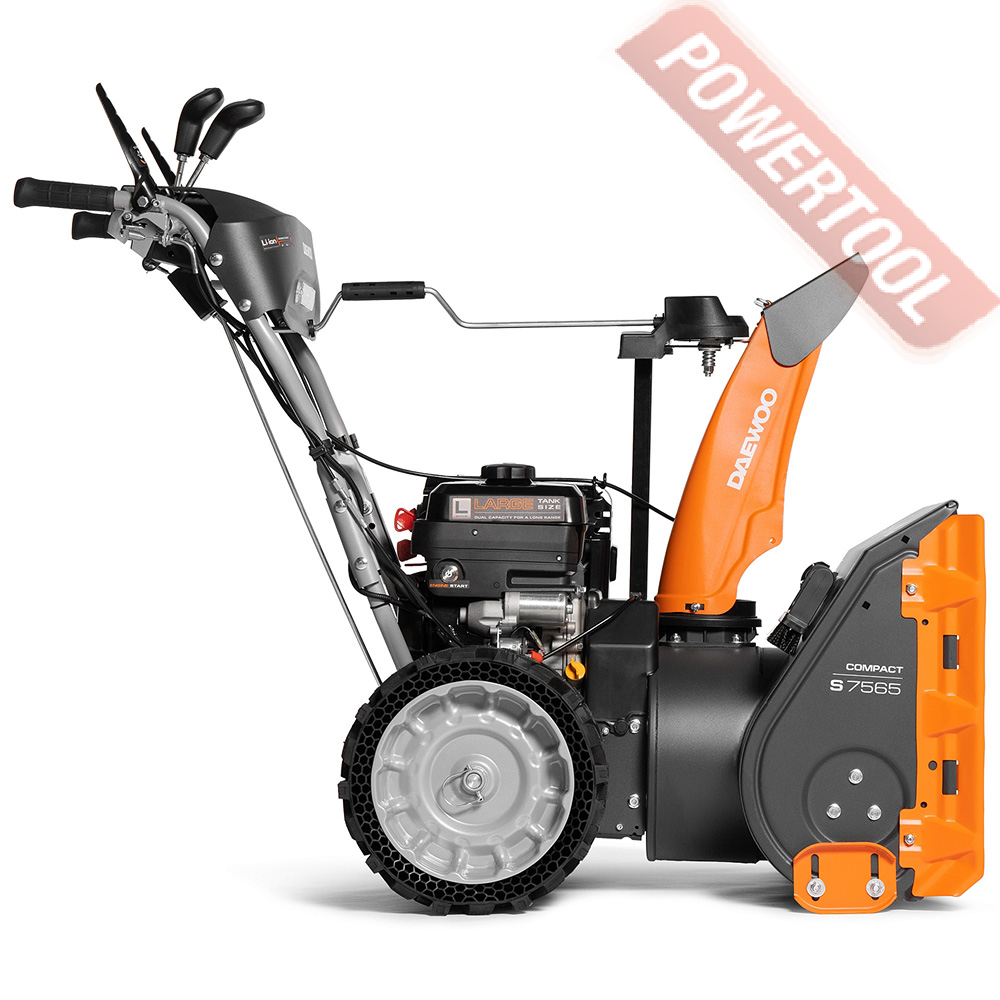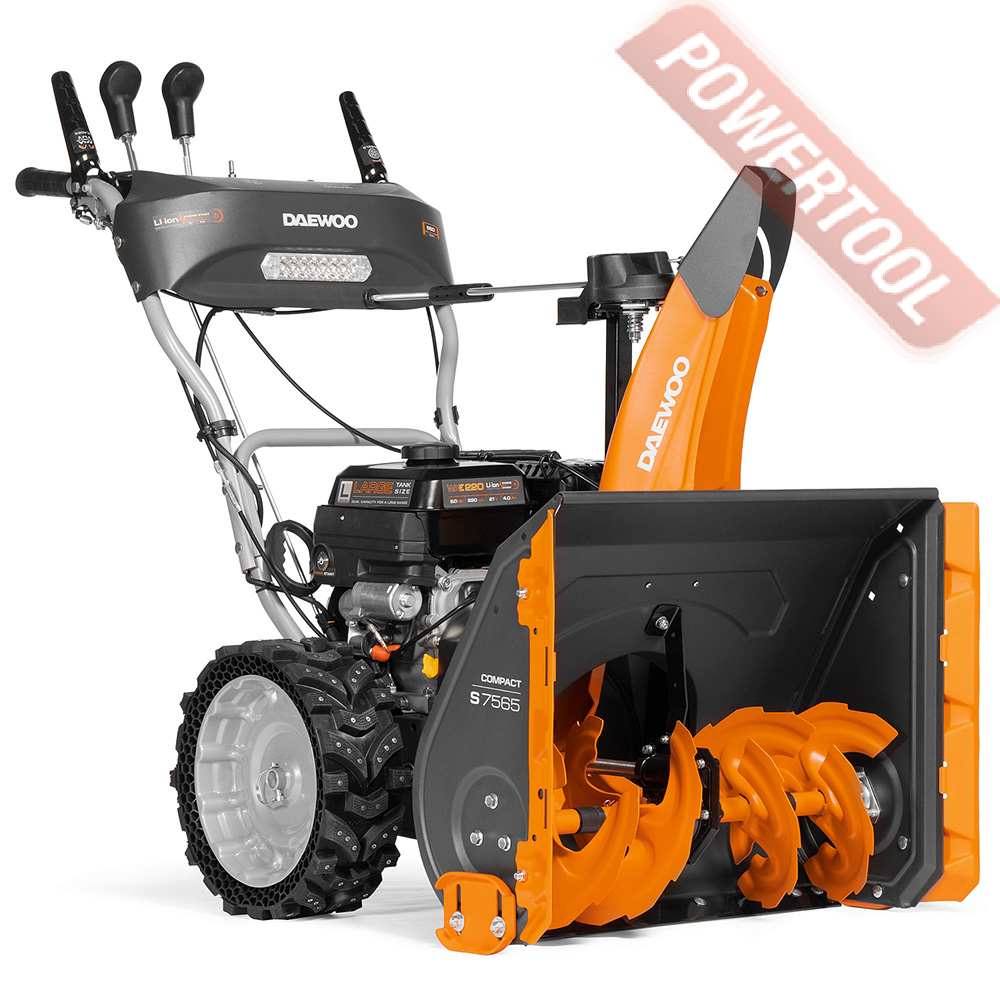 Снегоуборщик колесный самоходный DAEWOO S 7565 предназначен для расчистки как свежевыпавшего, так и уже слежавшегося снега. Машина оборудована мощным 4-тактным двигателем, ширина обработки за один проход позволяет эффективно и качественно расчищать от выпавшего снега небольшие дорожки или территорию возле загородного дома. Снегоотбрасыватель имеет двухступенчатую систему выброса снега: снег, попавший в ковш измельчается и подаётся зубчатым шнеком на крыльчатку с лопастями, которые вращаясь выбрасывают измельченный снег через патрубок в заданном оператором направлении. Наличие двух ступеней, зубчатого металлического шнека и высокоскоростной крыльчатки,позволяет разрыхлять даже слежавшийся снег.
