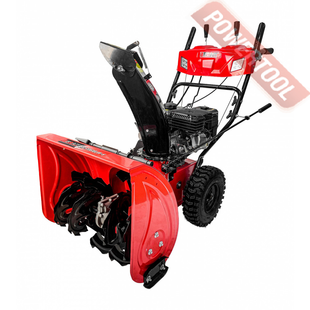 Снегоуборщик колесный самоходный, ширина ковша 71 см, высота ковша 51 см, 4-тактный бензиновый двигатель Briggs&Stratton 1450 Snow Series объемом 305 куб.см. мощностью 11 л.с., топливный бак 3 л, емкость картера 1,1 л, скорости 6 вперед и 2 назад, запуск ручной шнуром и электростарт 220 В, металлический желоб выброса снега поворачиваемый на 200 градусов с помощью электропривода на панели оператора, дальность выборса регулируется электроповодом с панели оператора,3-х лопастная крыльчатка выброса, зубчатый металлический шнек, колеса ДхШ 41х12 см, фара, вес 109 кг.