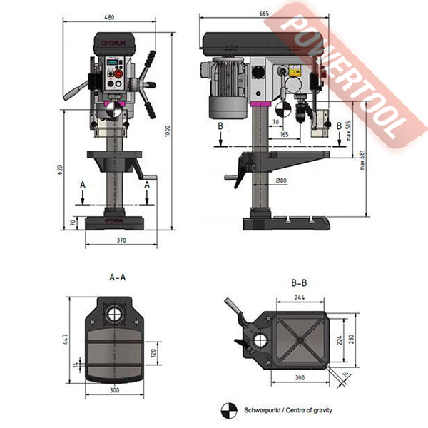 Сверлильный станок по металлу OPTIMUM OPTIdrill DH 24BV с бесступенчатой механической коробкой скоростей Berges.