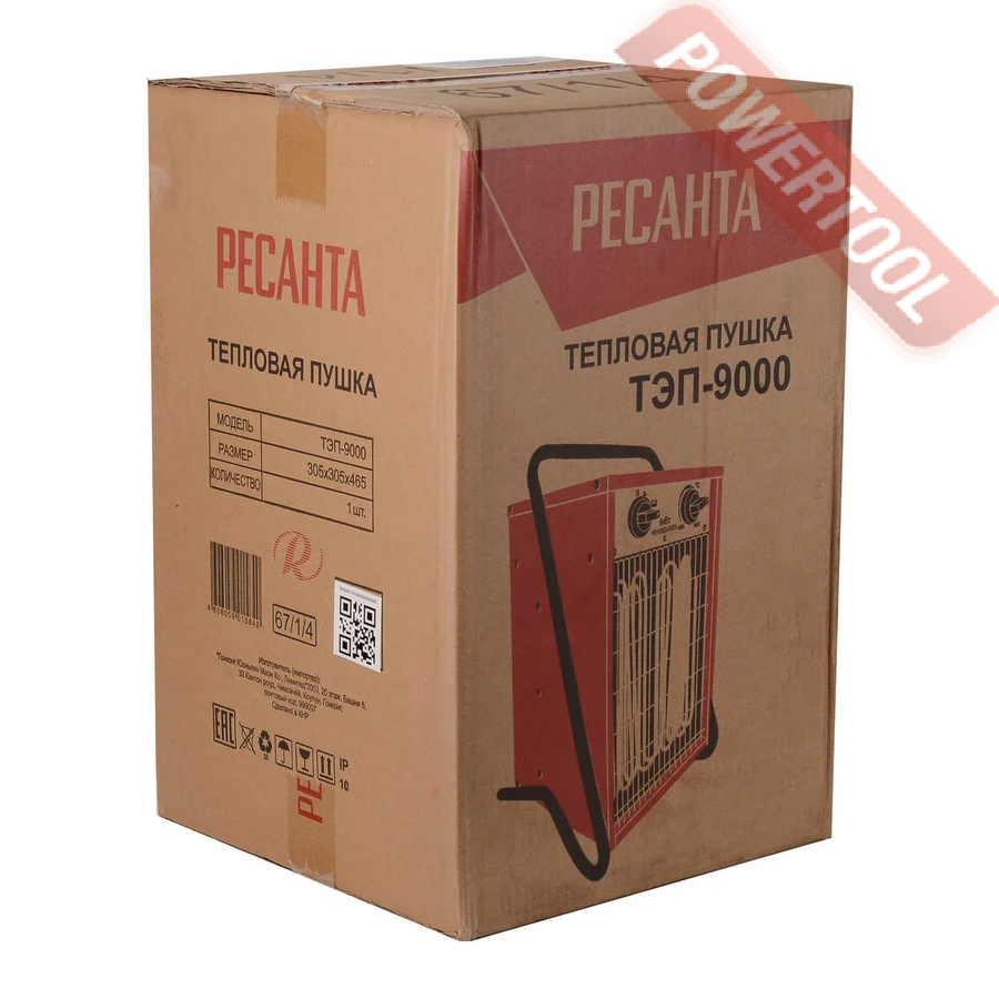 Тепловая пушка электрическая РЕСАНТА ТЭП-9000 - надежный экономичный обогреватель для квартиры и загородного дома. Большая площадь ТЭНов из нержавеющей стали и эффективный обдув способствуют более быстрому нагреву помещения без выжигания кислорода. Безопасность обеспечена дополнительным защитным кожухом, термопредохранителем, капиллярным терморегулятором и заземлением корпуса. Это устройство позволяет создать приемлемые климатические условия в помещениях даже с полным отсутствием иных источников отопления. Конструкция надежна и практична. Запуск производится путем переключения регулировочного реле. Обеспечивает чистый, быстрый и безопасный нагрев, идеален в качестве временного или экстренного средства обогрева благодаря простоте эксплуатации и мобильности. Процесс эксплуатации можно охарактеризовать достаточно тихим, при этом отсутствуют какие либо запахи. Нет необходимости заправлять оборудование топливом, достаточно просто произвести подсоединение к сети. Также однозначным достоинством технологии является сбережение кислорода внутри помещения.
