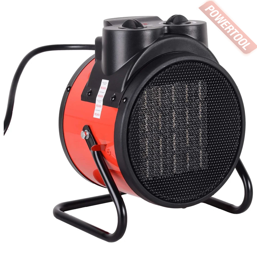 Тепловая пушка электрическая, напряжение сети 220 В, тепловая мощность 2/3 кВт, расход воздуха 300 куб.м/ч, потребляемая мощность 3000 Вт, 2 режима нагрева, режим вентилятора, встроенный термостат, датчик перегрева, керамический нагревательный элемент, регулировка угла наклона, габариты ДхШхВ 235х215х300 мм, вес 2,4 кг.