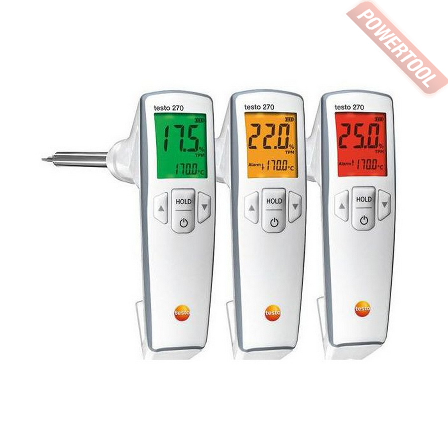 Тестер фритюрного масла TESTO 270 — прибор для измерения концентрации полярных соединений и температуры масла и жира для жарки. Трехцветная индикация упрощает процесс контроля качества измеряемой жидкости, а конструкция с перпендикулярным размещением зонда исключает получение ожогов при проведении замеров.
