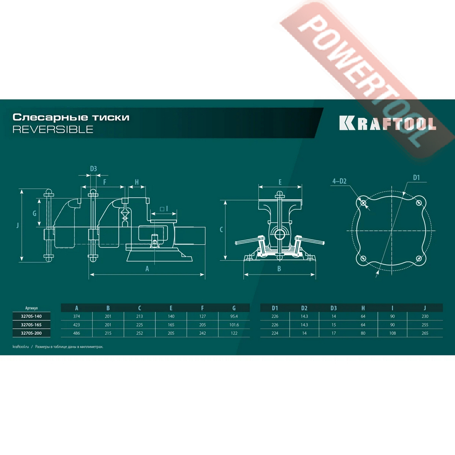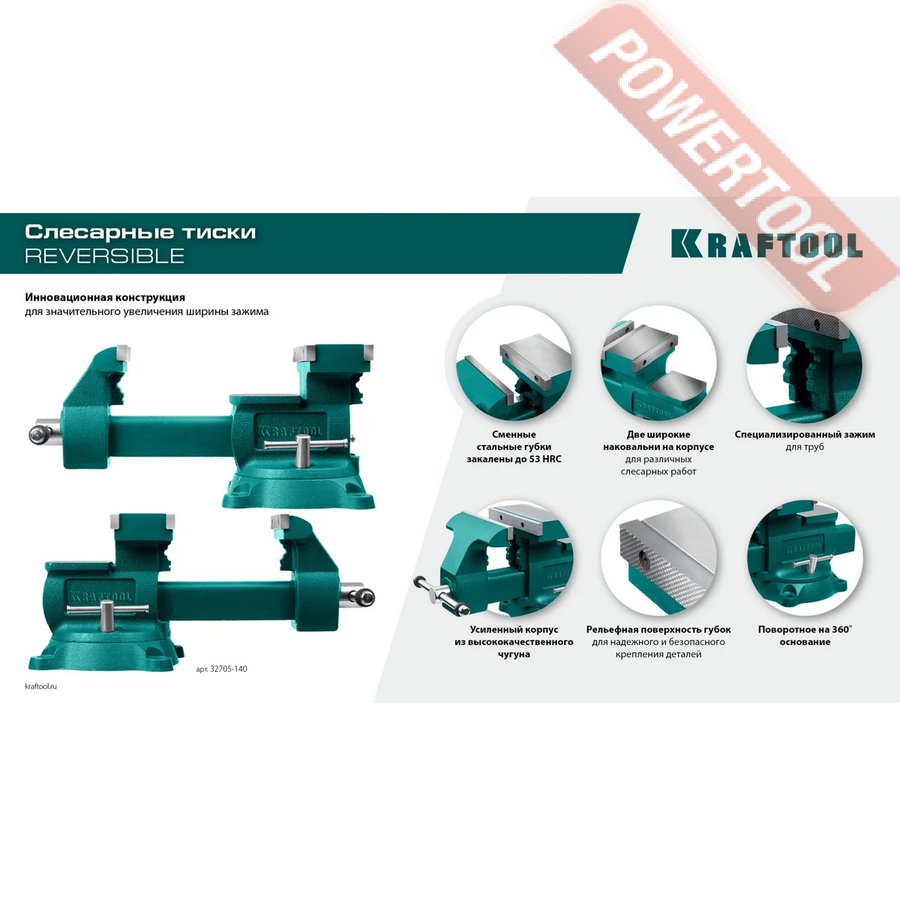 Тиски слесарные поворотные 165х324 мм KRAFTOOL Reversible арт.32705-165
