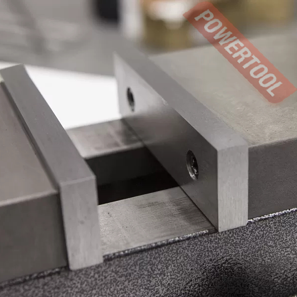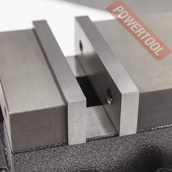 - Съемные рифленые губки изготовлены из закаленной инструментальной стали и отшлифованы для обеспечения надежного зажима и защиты поверхностей заготовок.