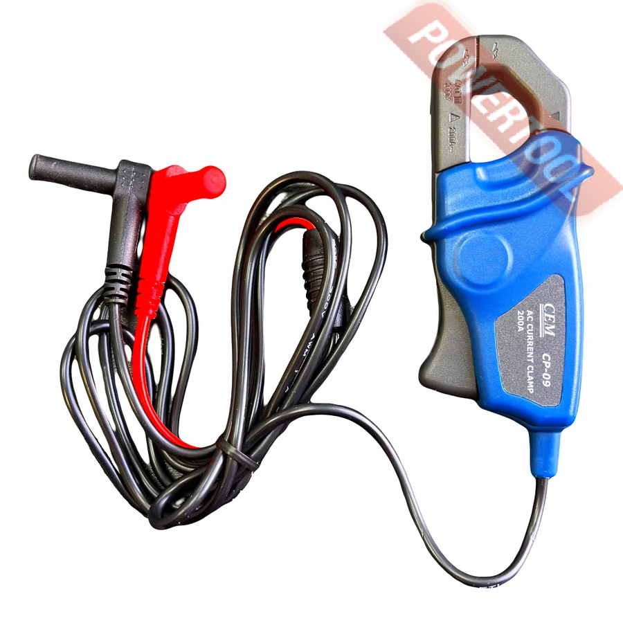 Токовый адаптер CEM CP-09, как опциональный аксессуар, может использоваться совместно с мультиметрами, вольтметрами или осциллографами, расширяя их измерительные возможности. С помощью данного изделия при подключении к электроизмерительному прибору, оснащенному встроенными средствами индикации, можно контролировать силу переменного тока номиналом до 200 А без разрыва электрической цепи и без электрического контакта с объектом контроля. Изделие меньше и легче, по сравнению с "полноценными" токовыми клещами, благодаря чему не занимает много места в инструментальной сумке при выполнении выездных работ.