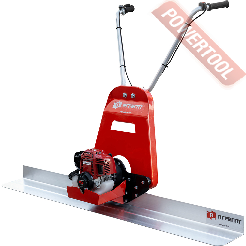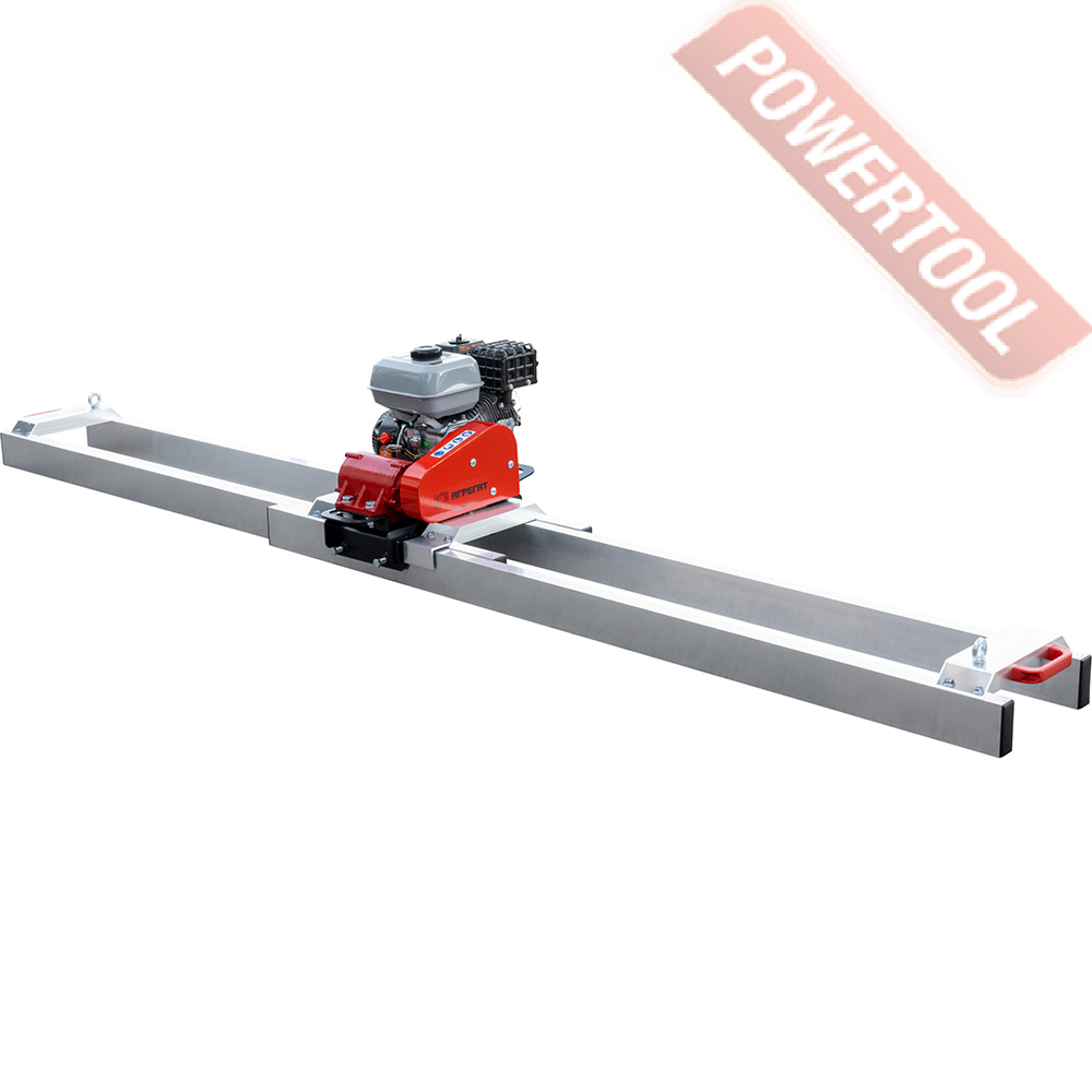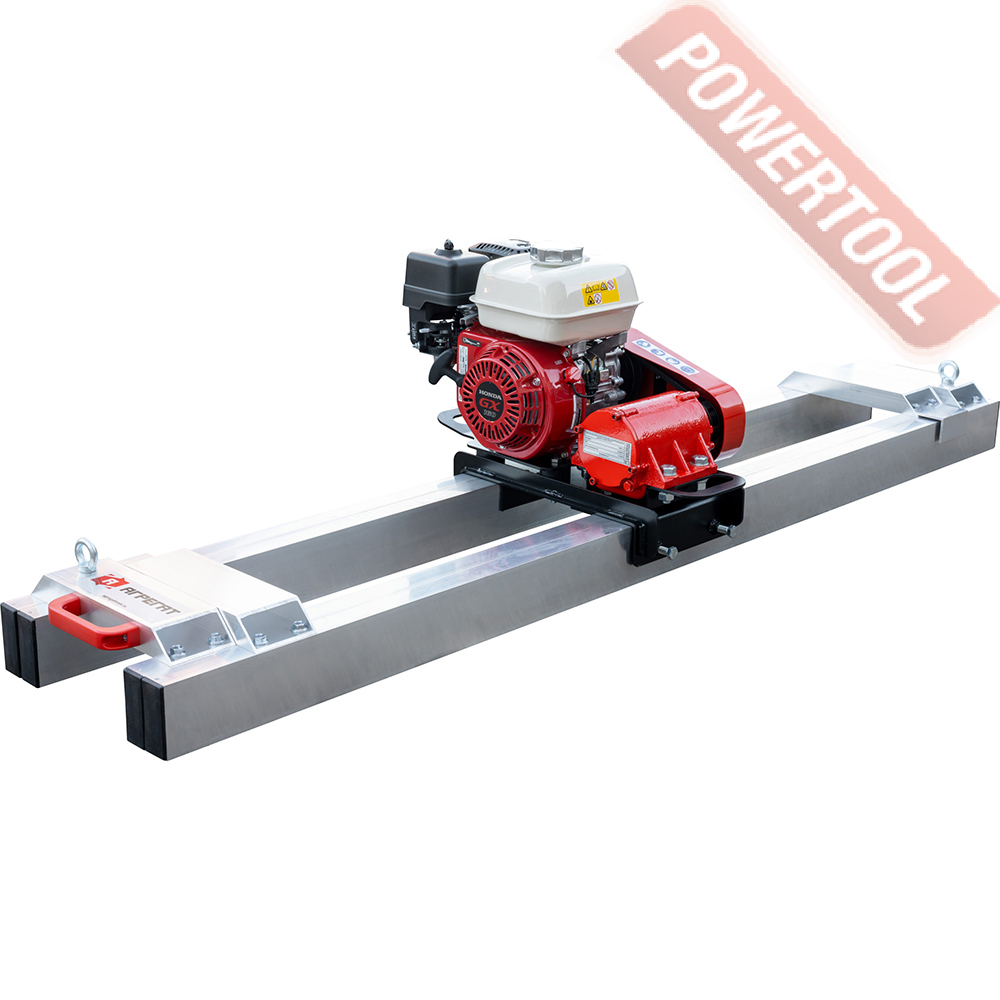 Бензиновый привод плавающей виброрейки по бетону, рабочая ширина профиля от 1,5 до 4 м, глубина уплотнения до 200 мм, регулируемая по высоте складываемая рукоятка управления, 4-тактный бензиновый двигатель Honda GX35 мощностью 1,3 л.с., топливный бак 0,63 л, расход топлива 0,73 л/ч, емкость картера 0,1 л, габариты 670х380х1030 мм, вес 14 кг, открытый L-образный профиль нужной ширины приобретается отдельно.