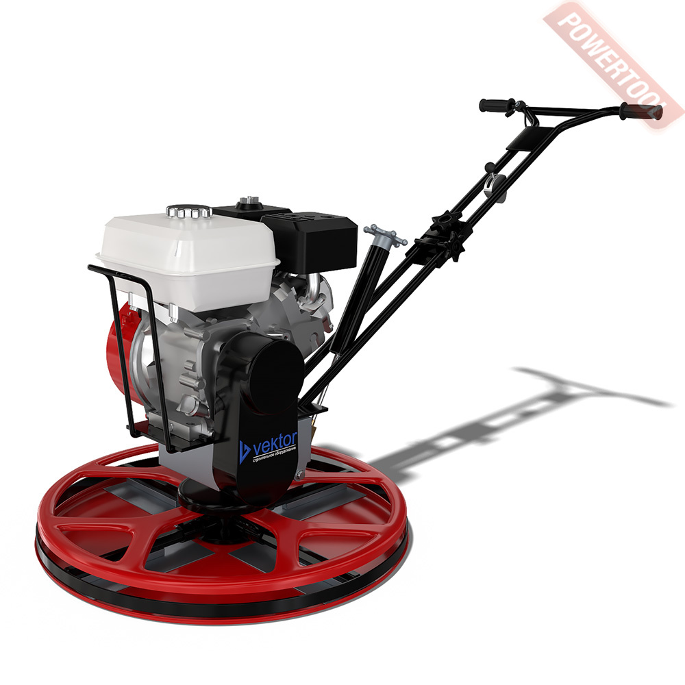 Однороторная затирочная машина по бетону, рабочая ширина 915 мм, диск диаметром 915 мм или 4 лопасти, угол наклона лезвий 0-30 градусов, частота вращения 60-125 об/мин, 4-тактный бензиновый двигатель WACKER NEUSON WM 170 объемом 169 куб.см мощностью 5,7 л.с., топливный бак 3,6 л,  расход топлива 1,8 л/ч, емкость картера 0,6 л,размеры ДхШхВ 2005x915x1040 мм, вес 85 кг, комплект лопастей для финишной затирки, не входит в комплект поставки и приобретается отдельно рукоятка управления, затирочный диск и подъемная дуга.