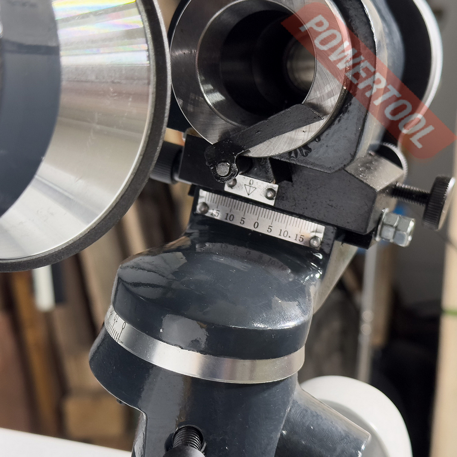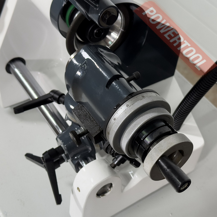Широкий диапазон настроек положения делительной головки позволяет затачивать инструмент под любым необходимым углом. Головка имеет 24 положения фиксации, а так-же свободное вращение на 180 градусов или 360 градусов. Массивная конструкция корпуса станка, выполненная из чугуна, гарантирует его хорошую устойчивость. Высокая точность заточки инструмента обеспечивается прецизионным шлифовальным шпинделем и наличием микроподач заточного круга и цангового держателя. Для фиксации затачиваемого инструмента в делительном устройстве используются цанги DIN 6341, тип 385E (5C). В комплекте со станком поставляется 5 цанг 4, 6, 8, 10 и 12 мм. При приобретении дополнительного комплекта цанг арт. 700250128 появляется возможность затачивать режущий инструмент с цилиндрическим хвостовиком в диапазоне от 1 до 28 мм.